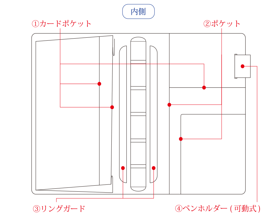 全てのサイズに大きく開く背面ポケットが備わり、収納力抜群です。何を入れようか考える楽しさを味わってください。パープルとライトグリーンが明るい気分を運んでくれます。(画像はA5サイズの背面ポケット)サイズ・仕様