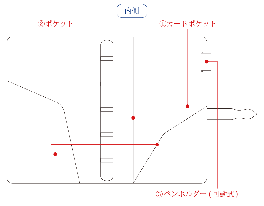 このふっくらテイストがたまりません。手帳のコーナーは見た目の印象からは意外にもシャープですが、ふっくら感の演出に一役買っているのでしょう。ちょっぴり凛々しく