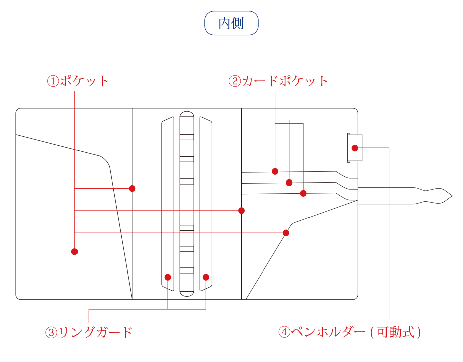 このふっくらテイストがたまりません。手帳のコーナーは見た目の印象からは意外にもシャープですが、ふっくら感の演出に一役買っているのでしょう。ちょっぴり凛々しく