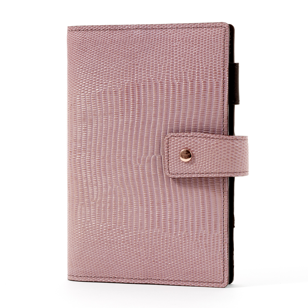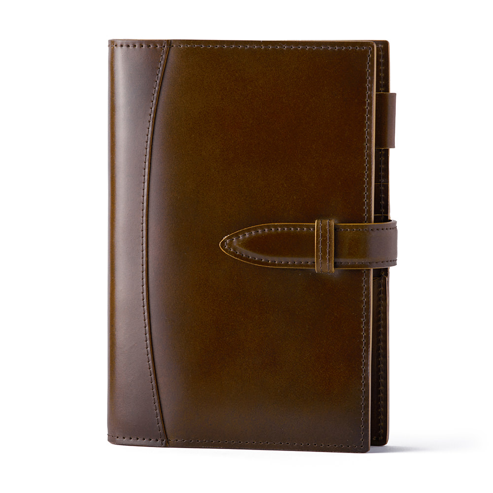 システム手帳の標準サイズ。持ち運び、書くスペースの 両方を考えたときによく選ばれるサイズです。手帳やリフィルの種類が最も多く、 書くだけでなくお金やツールの収納リフィルを加えて、自分好みに便利に編集できます。 ベルトがあるタイプは、手帳が容易に開かないようしっかりホールドできて安心です。