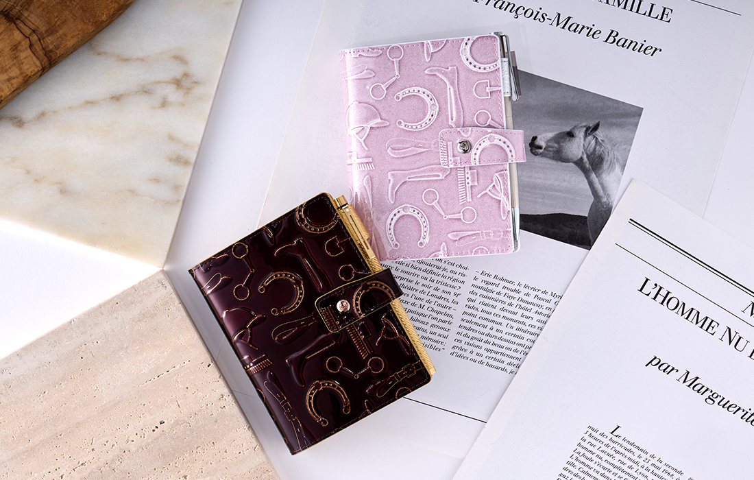 溢れる馬愛をオリジナルで馬具の型押しに起こしたところから、