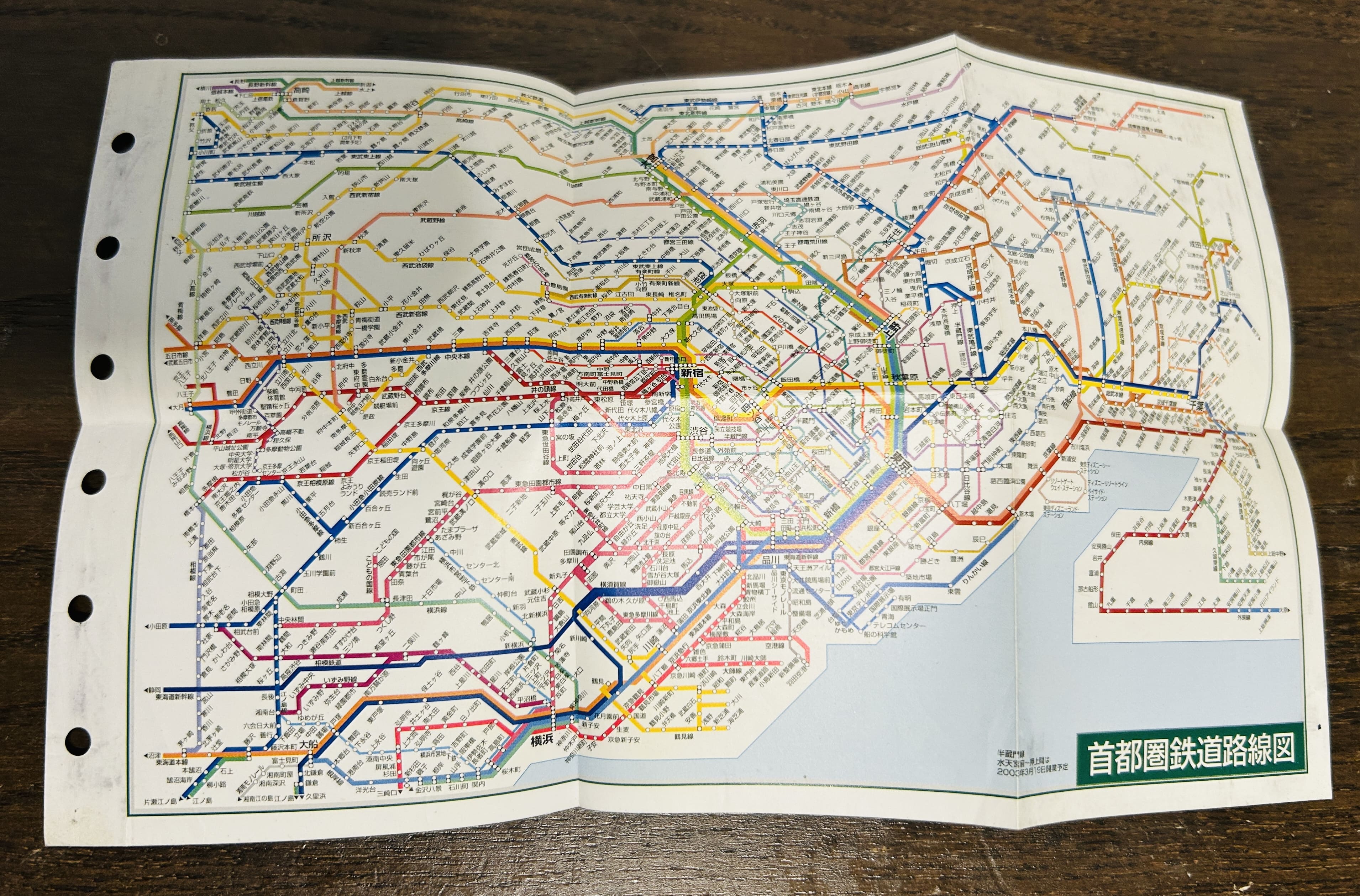 ・鉄道の路線図(手帳専用で、三つ折りの見開きのようになっていて6つ穴が空いていた)