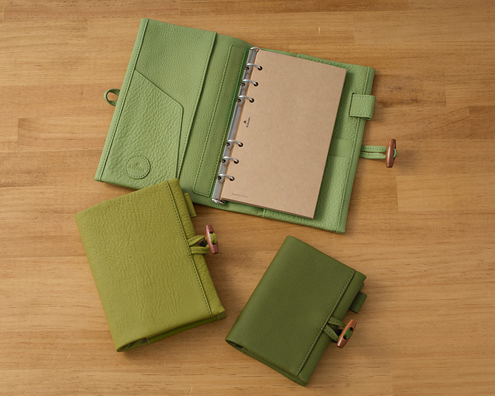 カラーとサイズは、それぞれ3種類。MICRO5、MINI6、BIBLEサイズに自然の息吹をそのまま閉じ込めたような3色。ふとした瞬間に、視界と気持ちをやさしく整えてくれます。竹が伸びはじめる季節の、みずみずしい光と期待に満ちた「若竹(わかたけ)」、