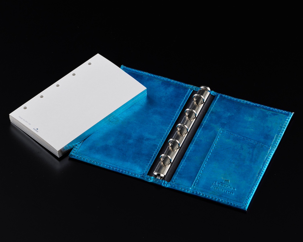 鮮やかで濃厚な青「ビザンチンブルー」は、シルバーの小口リフィルと合わせて使えば、さらに魅惑的に。さらにサッと開け、ストレスなく180度開く機能性はあなたを上機嫌に。サイズ・仕様