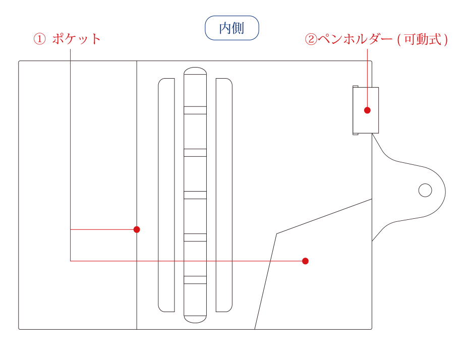 必要最小限のポケットと、すっきりとした構成。飽きのこないシンプルさが、革と細めのリングの美しさを引き立てます。