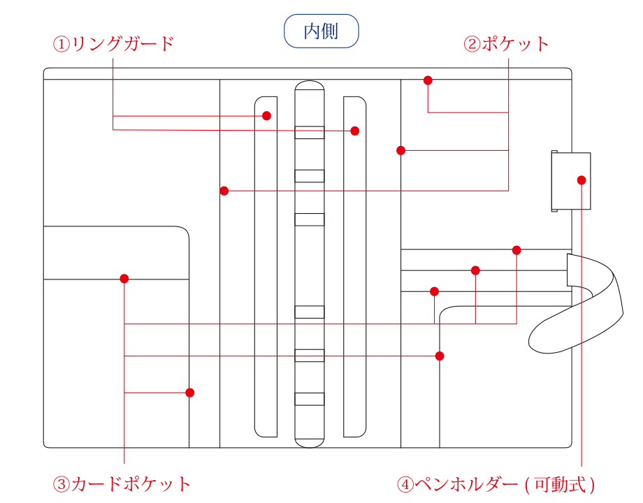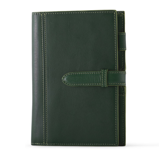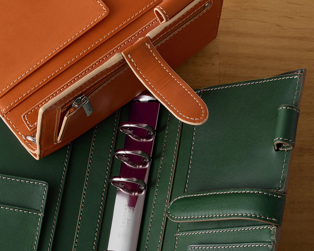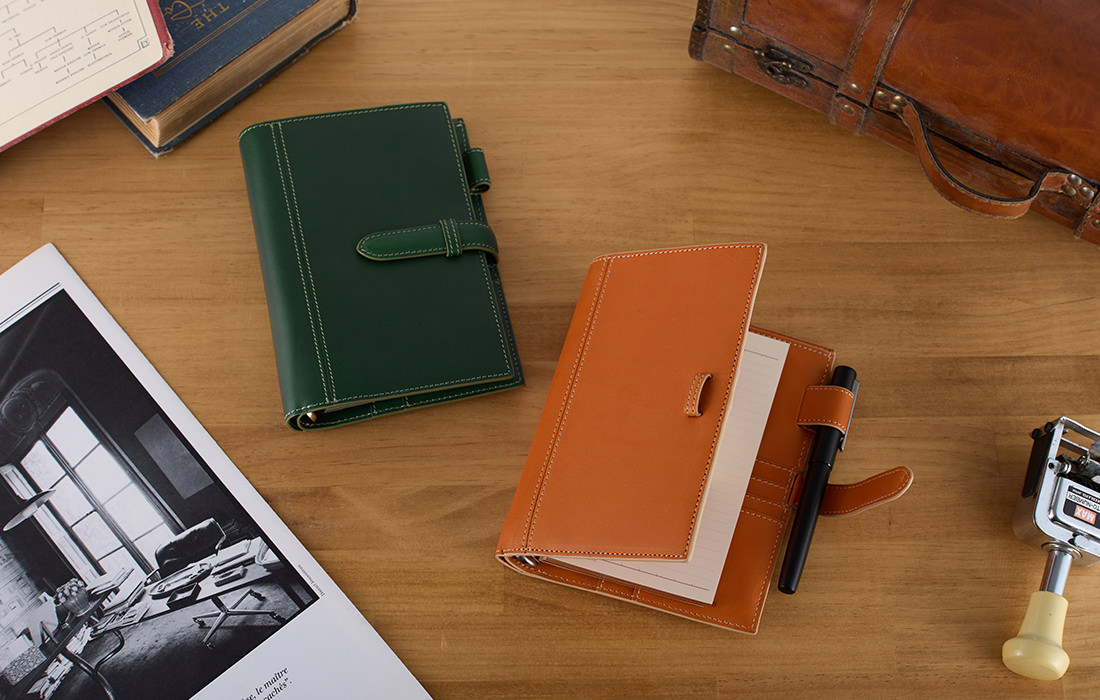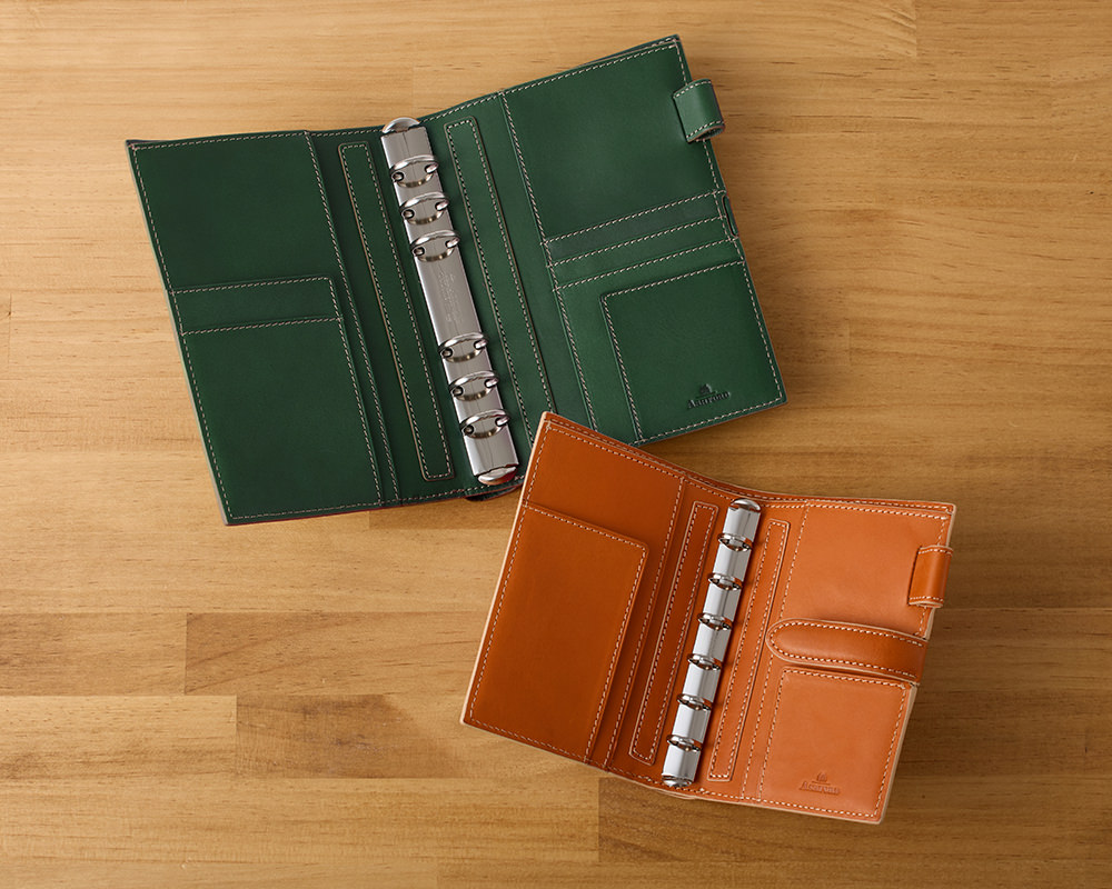 グリーンの手帳ではベルトを後ろに回した状態、オレンジは内側に沿って平たくなる状態を再現。ベルトを自在に移動させされることで想像以上にストレスフリーな心地良さです。サイズ・仕様