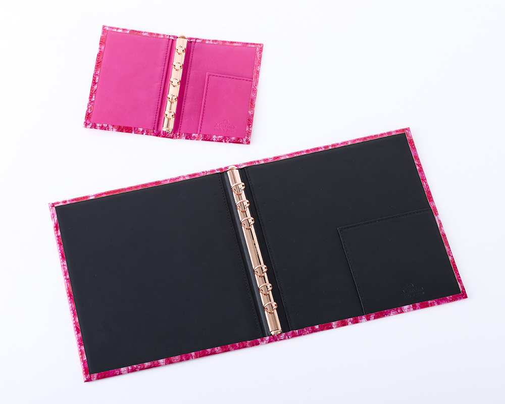 MICRO5の内側にはビビッドなピンク、 HB×WA5の内側には表革と対照的なブラック。 名門イタリア・ファエダ社の柔らかでしっとりとした、ソフトレザーで表革の興奮をしっかり受け止めます。 ローズゴールドリングがそれぞれ映えて、パーティ気分。 HB×WA5は細めの11mmリングで持ち運びも軽快に。サイズ・仕様