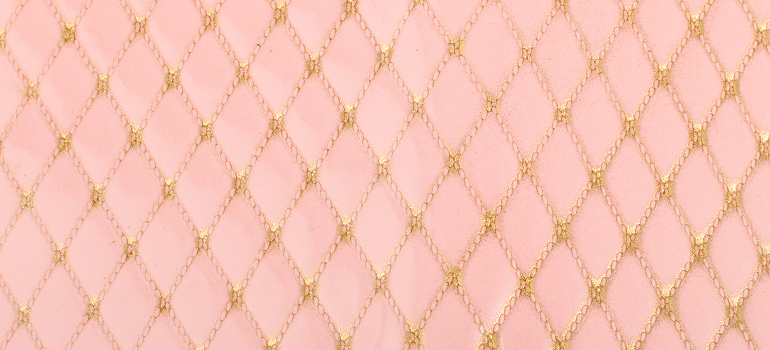 淡いピンクのステアレザーに、キルティング模様を丁寧に型押しし、その上から金色の塗料をのせて、盛り上がった部分だけをそっと拭い落とす。ふくらみにはやわらかなピンクが残り、くぼみには金色の粒子がきらめく。そんな、甘さと華やかさがほどよく溶け合った、愛らしいレザー。 仕上げにエナメルを重ね、とろけるようなツヤ感がいっそう幸福感をもたらしてくれます。