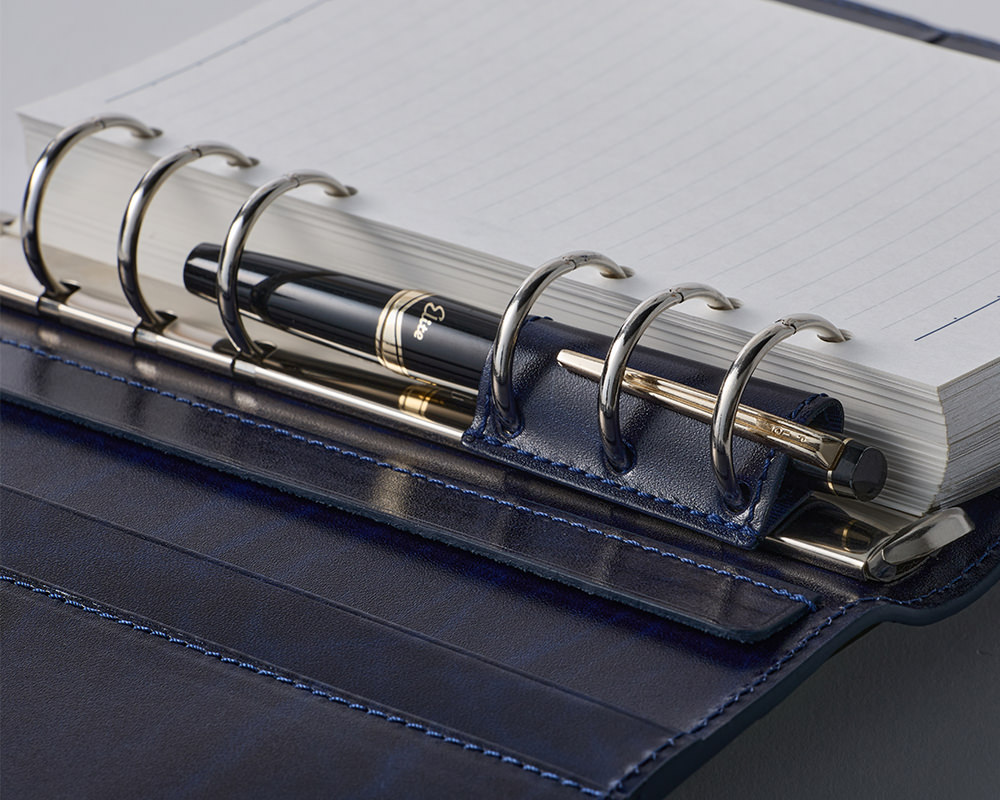 BIBLEには、直径約20mmまでのペンを収納可能な可動式のペンホルダーの他に リング内に装着するペンホルダーも付属し、直径約10mmのペンを収納することが可能。お好きなペンを2本持ち歩くことができ快適です。Planner's Room